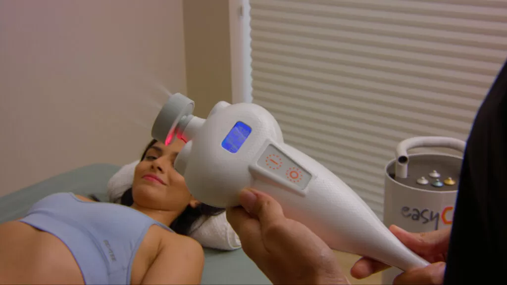 America Cryo’s Subzero handheld works by delivering short bursts of -110F carbon dioxide that drops skin temperature 59 degrees in 30 seconds, initiating a process called thermal shock.